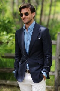 ✔ Blazer: es el elemento formal por excelencia en este código, sobre todo azul marino. Eso sí, no uses el saco de tu traje completo, se notará que pertenece a otro conjunto y que además no está dentro de lo casual.